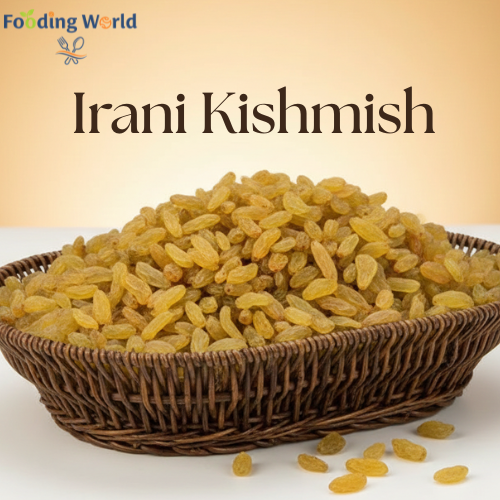 Enjoy the rich flavour and natural sweetness of premium Irani Kishmish, which is ideal for baking, nibbling, or giving a lovely touch to sweets. At Fooding World Store, we make sure that every pack is carefully chosen and kept in a hygienic manner to preserve quality and freshness, providing you with a delightful and healthful treat every time.