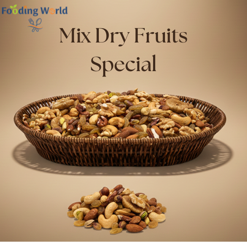 Our Mix Dry Fruits Special at the Fooding World Store offers a Premium Mix of taste and freshness. This nutritious variety is perfect for gifting, nibbling, or incorporating into everyday meals. It contains premium nuts and dried fruits. Each pack has been thoughtfully selected to give you a mouthwatering taste and wholesome energy with each bite.