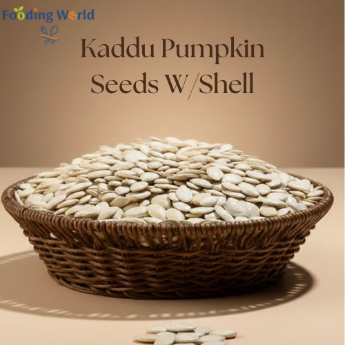 Enjoy the delicious and crunchy Kaddu Pumpkin Seeds with Shell. These are perfectly salted for a lovely snack. The Fooding World Store sells these nutrient-dense seeds, which are rich in fiber, minerals, and natural goodness. They can be a regular part of your diet, a snack, or a topping for salads. Delicious, vibrant, and fresh!