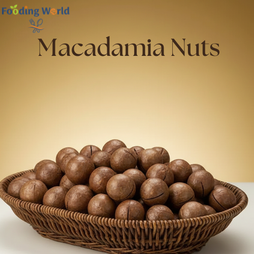 Fooding World Store's Macadamia Nuts:  Savour the rich, buttery flavour of our premium macadamia nuts. That they are crisp, fresh, and nutrient-dense.  Ideal for enhancing any meal or serving as a healthy snack.