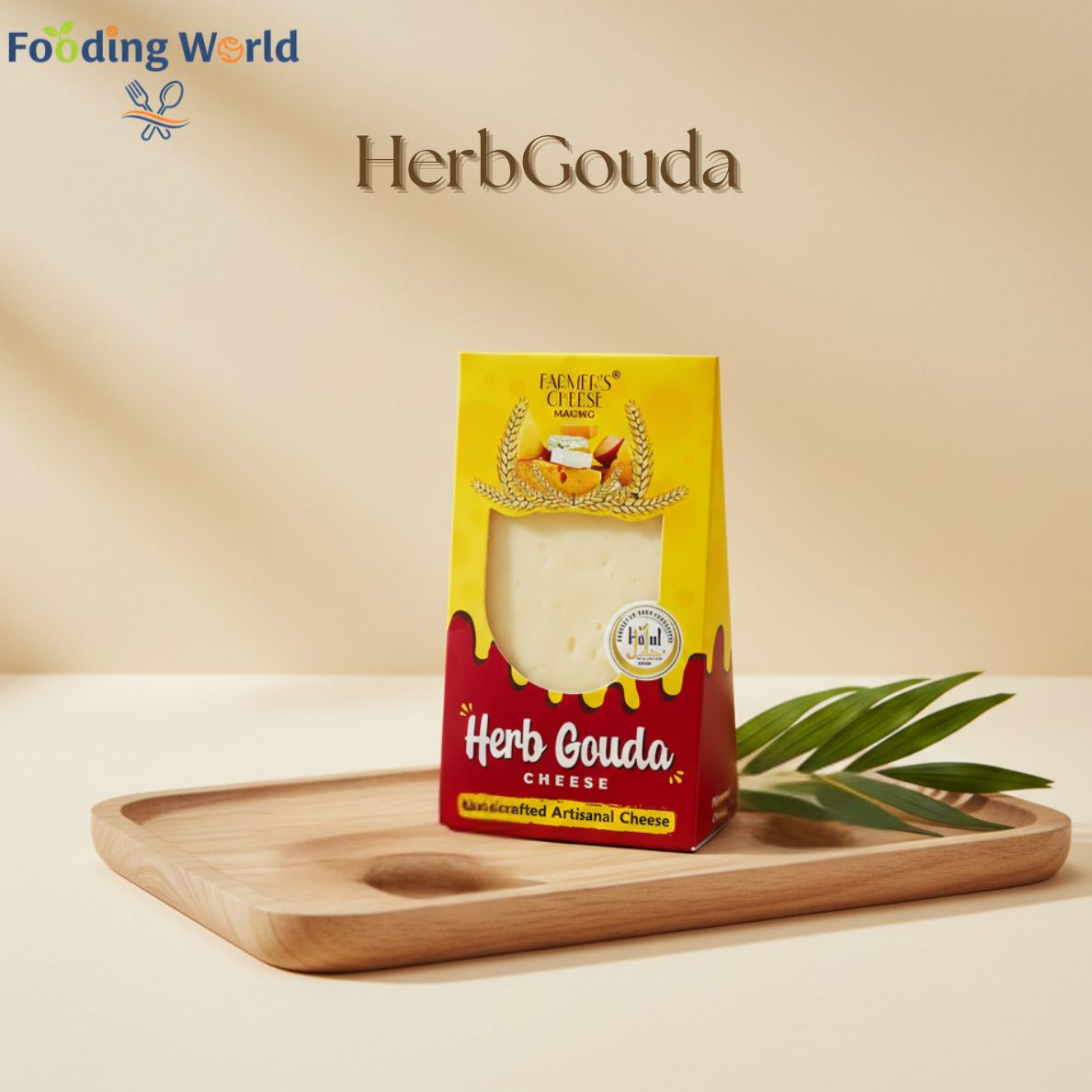 Enjoy a wonderful combination of fragrant herbs and creamy Gouda with Fooding World Making's Herb Gouda. Your senses are awakened by the aromatic nuances that accentuate the smooth, buttery texture of each bite. You can enjoy this cheese on sandwiches, cheese platters, or melt it over hot dishes. It adds a touch of gourmet flavor to everyday foods.